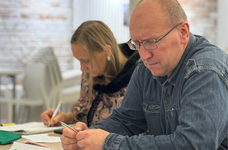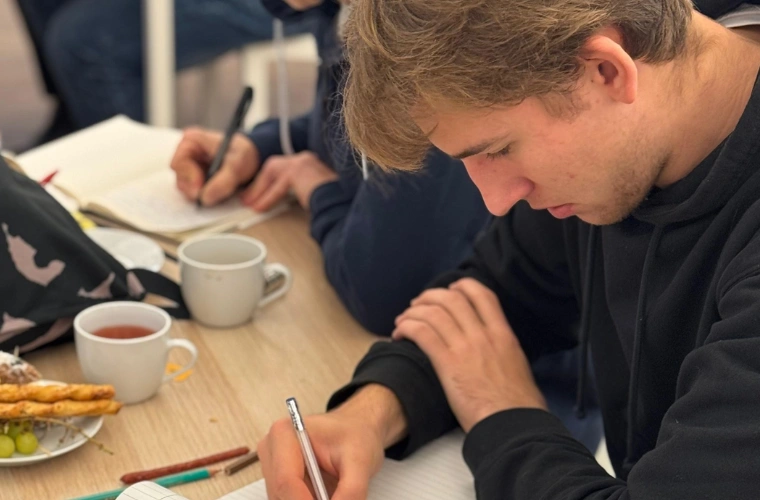 Einmal im Monat gibt es eine intensive Unterrichtseinheit, und die Teilnehmenden legen regelmäßig Tests ab, um das Gelernte zu festigen.